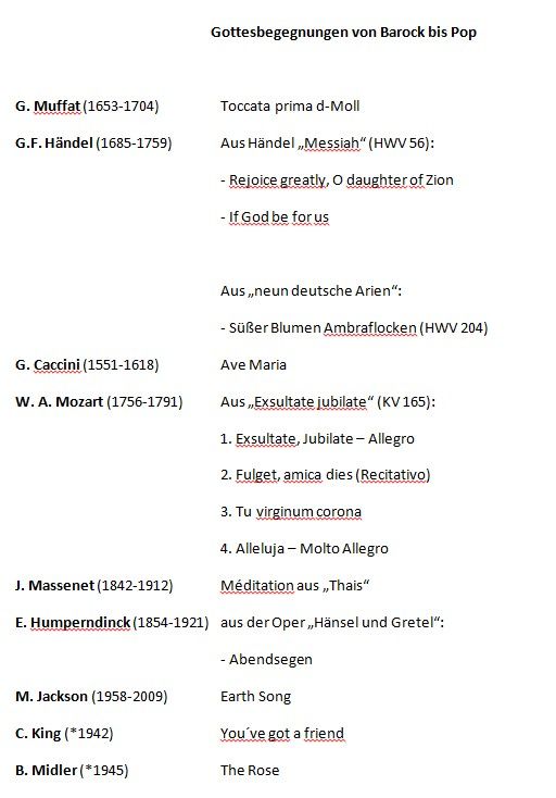 Musik durch die Epochen für Orgel, Piano, Violine und Gesang